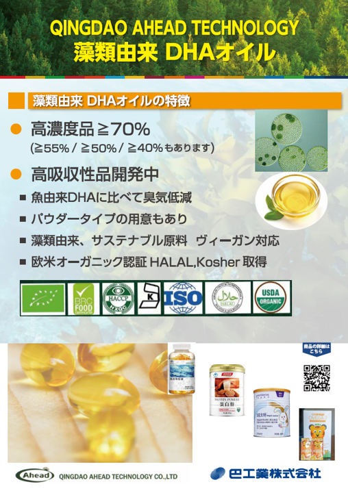 AHEAD社は中国 山東省青島にある健康食品原料のメーカーです。藻類由来DHAオイルのほか、